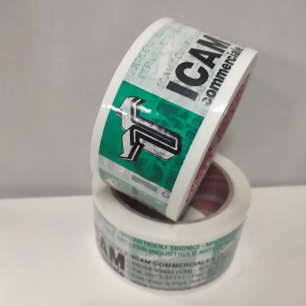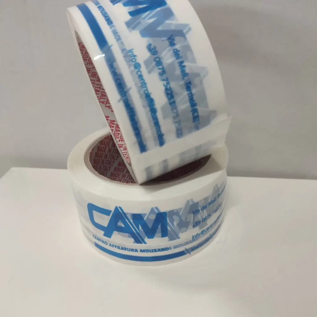 Un nastro adesivo personalizzato da ai tuoi imballaggi un aspetto più professionale. Scegliere un nastro adesivo personalizzato darà la tua azienda visibilità elevata con bassissimi costi rispetto al classino nastro da imballaggio..